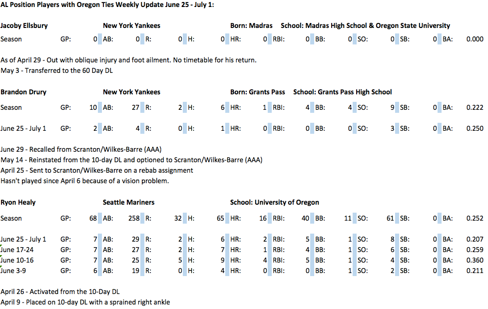 MLB Players with Oregon Ties Weekly Update for June 25 - July 1Bob WebsterJul 2, 20181 min read Position Players
